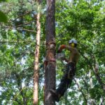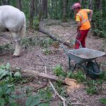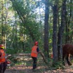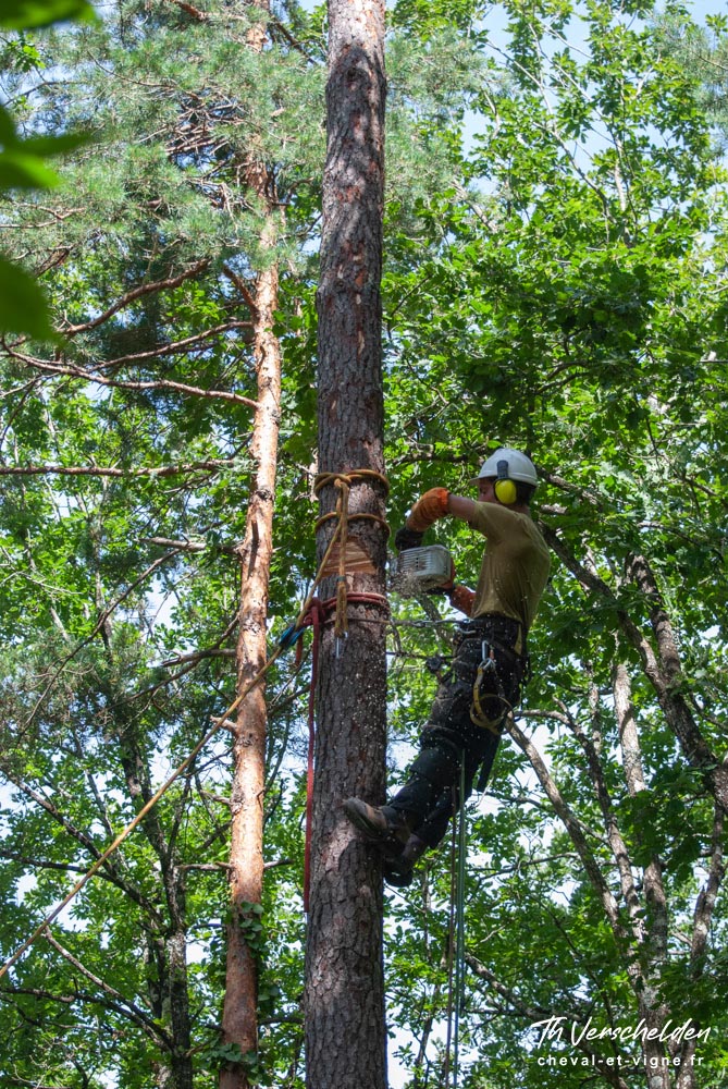 Les photos qui suivent ont été réalisées hors de la zone interdite, lors d’une coupe de contrôle et de regénération. En fonction de leur taille et de leur localisation, les arbres sélectionnés ont été démontés pour les plus grands, ou abattus.
