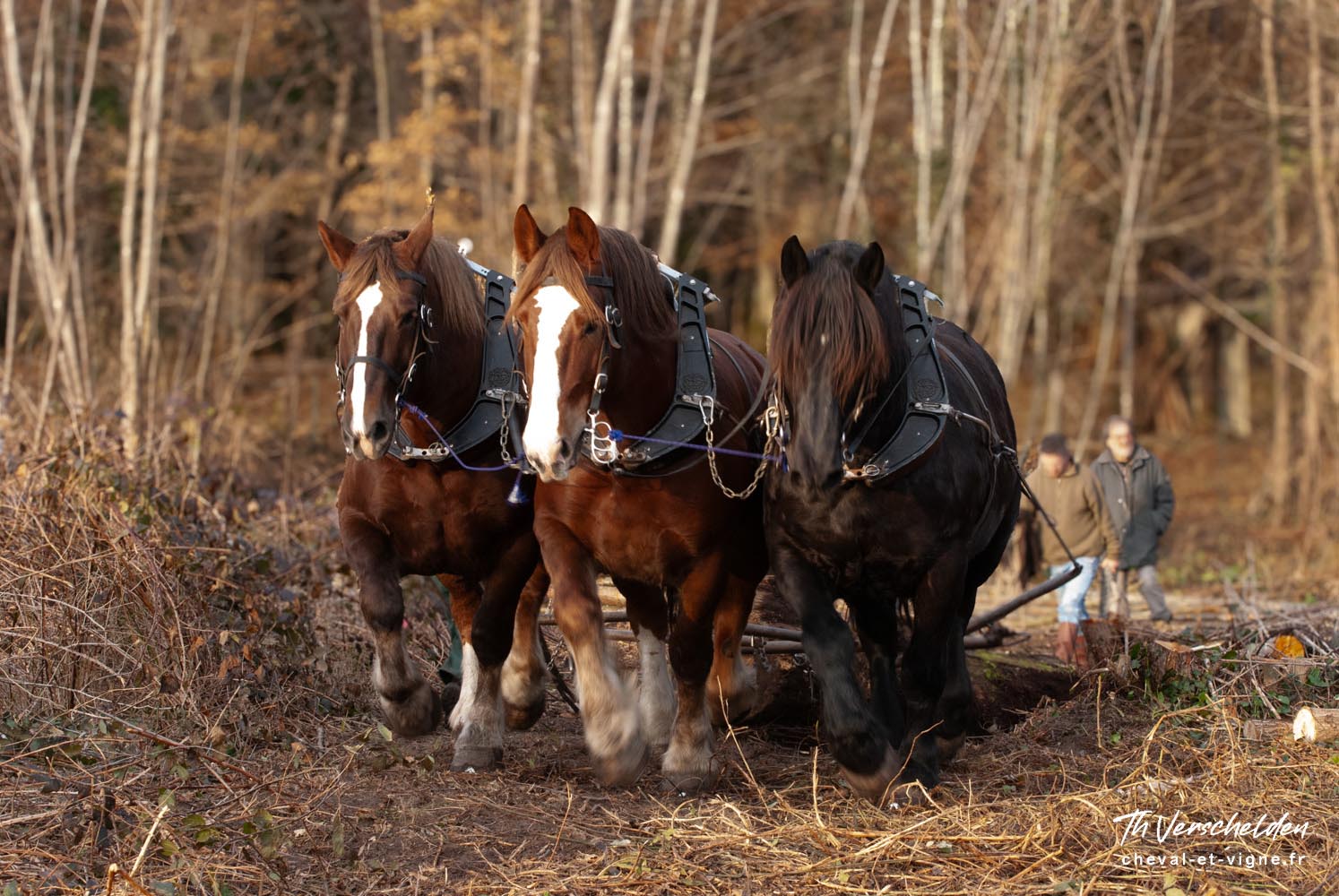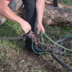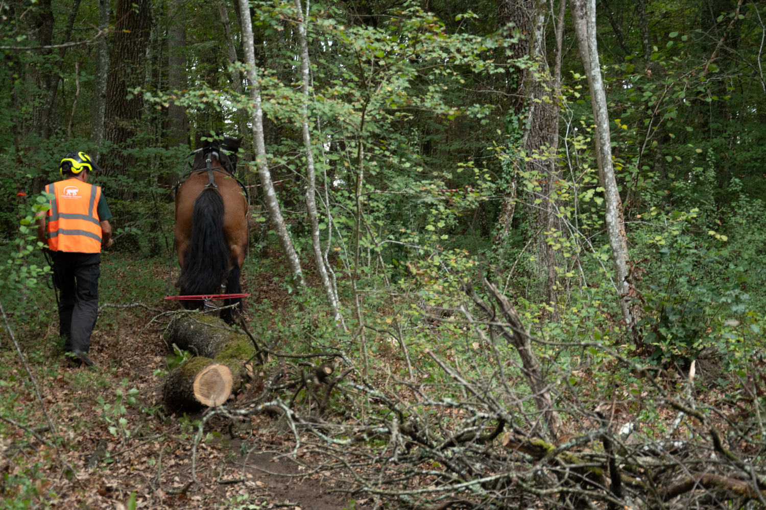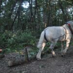Dans les phases d’abattage et de mise à la taille, pour des questions de sécurité, il est impératif que les chevaux aient été correctement désensibilisés au bruit agressif des tronçonneuses et restent impassibles même à proximité immédiate de l’outil en action.