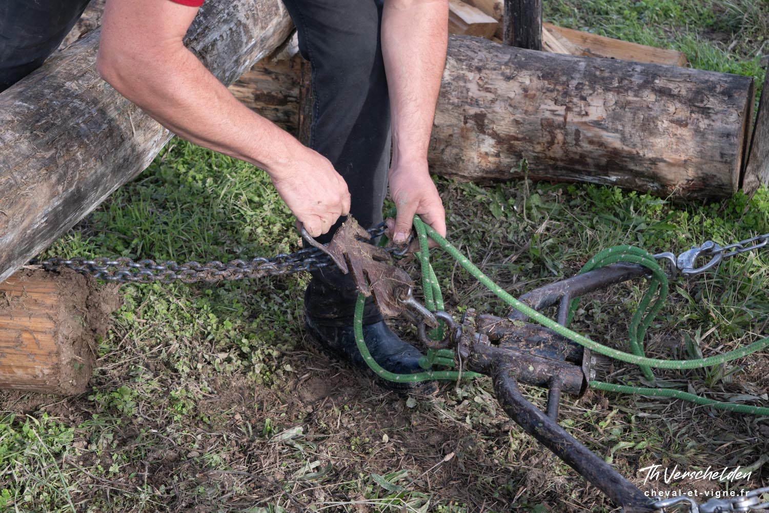 Les plus longs, de petite et moyenne section, en traine directe. Une chaine est passée autour du tronc, et insérée dans l’anse d’un crochet qui joue le rôle de nœud coulant. L’autre extrémité de la chaine est reliée au palonnier par le biais du peigne.