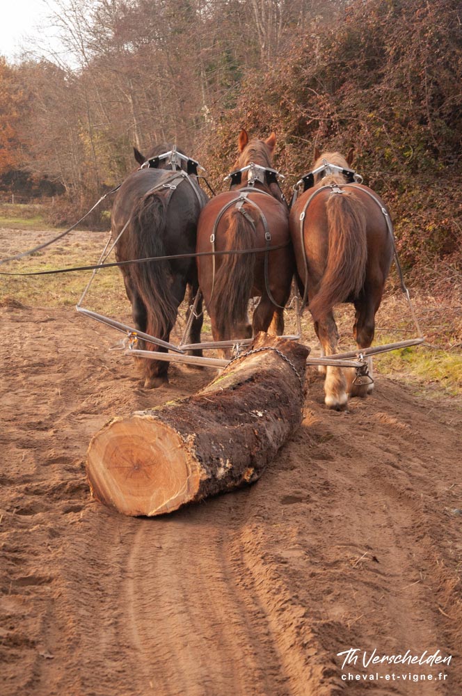 Pour les fûts de forte section il est possible de mettre plusieurs chevaux de front ou d’utiliser un triqueballe (ou trinqueballe) qui est une sorte de fardier.